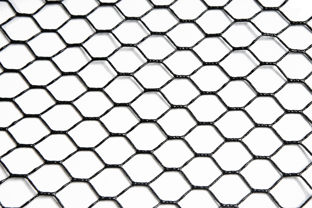 Резиновая сетка. Безопасна для рыбы, предотвращает запутывание крючков и быстро сохнет, облегчая уход за подсачеком.