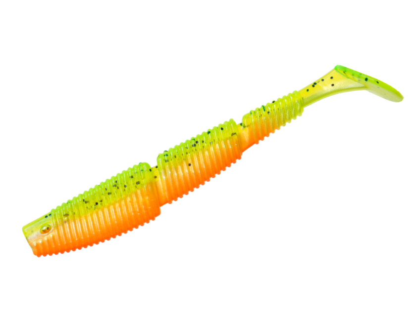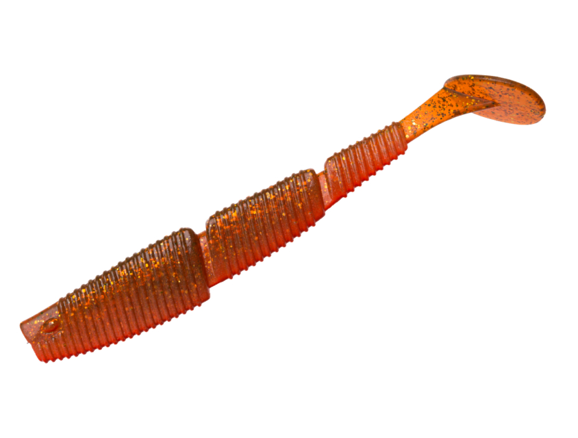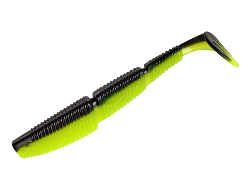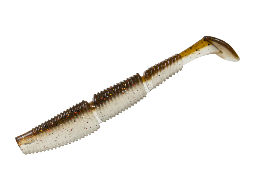 Виброхвост с треугольным сечением тела, состоит из 3 секций и, собственно, хвоста. Во-первых, эта конструкция позволяет приманке активно работать, а во-вторых, при необходимости, отрезав переднюю секцию, можно продолжать ловить на приманку, но уже меньшего размера. Насечки на теле Complex Shad создают дополнительный «шум» при проводке. Приманка отлично зарекомендовала себя при ловле в водоемах любого типа, от водохранилищ со стоячей водой, до больших рек с сильным течением.
