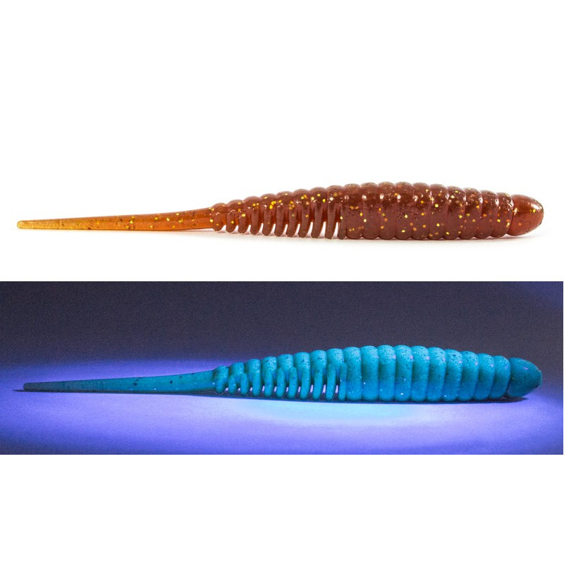 Небольшой слаг из съедобного силикона имеет округлое, довольно объемное тело длиной 92 мм, заканчивающееся длинным тонким хвостиком, небольшие вырезы у основания хвоста придают приманке особые подвижные свойства, а также увеличивают площадь распространения аттрактанта. Приманка прекрасно «твичится», что позволяет, в первую очередь, использовать ее в поводковой оснастке при рывковой проводке, также ее по достоинству оценят любители микроджига, где приманка идет медленно, как бы вразвалку, что прекрасно привлекает хищника!