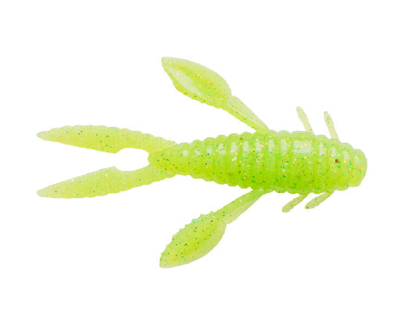 Ракообразная приманка из съедобного, упругого силикона длиной 53 мм. Рачок имеет довольно толстое тельце, в котором хорошо держится крючок даже после большого количества поклевок. Клешни и усы рака создают шевеления во время проводки, а также колебания различной частоты, полностью копируя движения живого рачка и склоняя хищника на поклевку. Проводку следует делать неспешную, волнообразную, имитируя линяющего рака. Лучшей оснасткой будут поводковая и микроджиг.